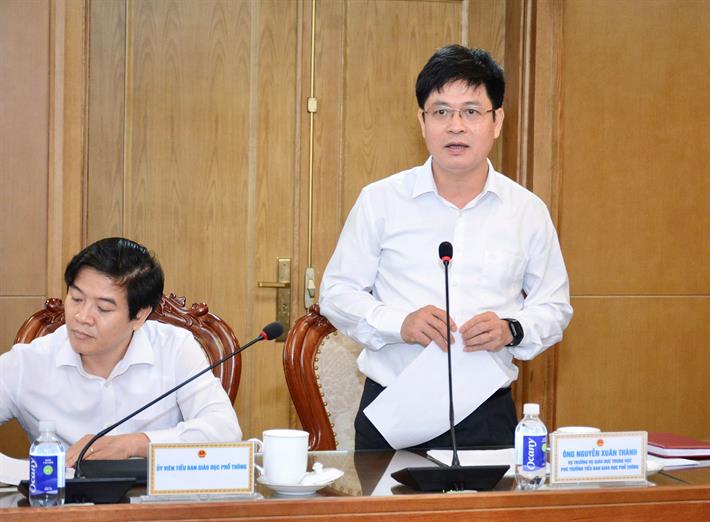 Vụ trưởng Vụ Giáo dục Trung học Nguyễn Xuân Thành báo cáo tại phiên họp